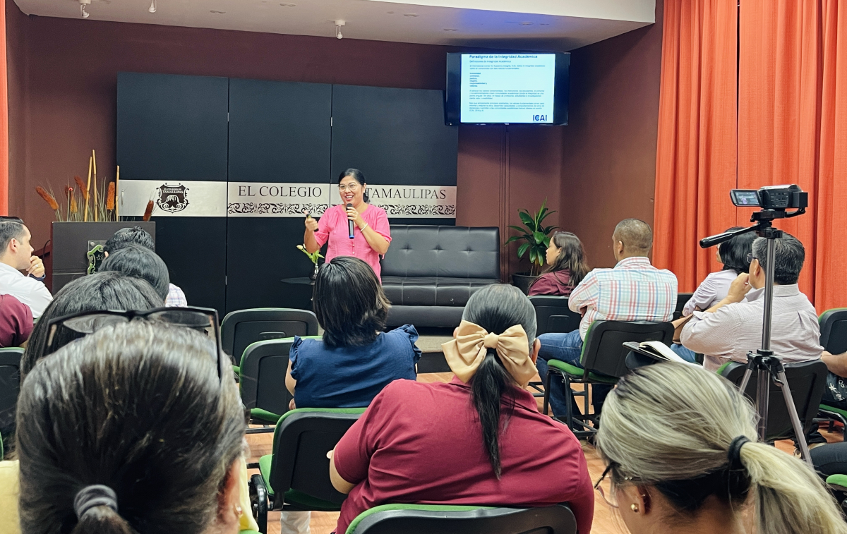 El día de ayer se llevó a cabo la conferencia “Competencias Digitales Informacionales para la Integridad Académica en Educación Superior en el Contexto de la Inteligencia Artificial”, impartido por la Dra. Saknicté Pisté Beltrán, en el auditorio de El Colegio de Tamaulipas, contando con la presencia del Mtro. Marco Antonio Moreno Castellanos, rector de la institución.
